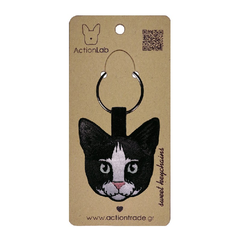 Κεντητό μπρελόκ υψηλής ποιότητας με ανεξίτηλες κλωστέςBLACK & WHITE CAT