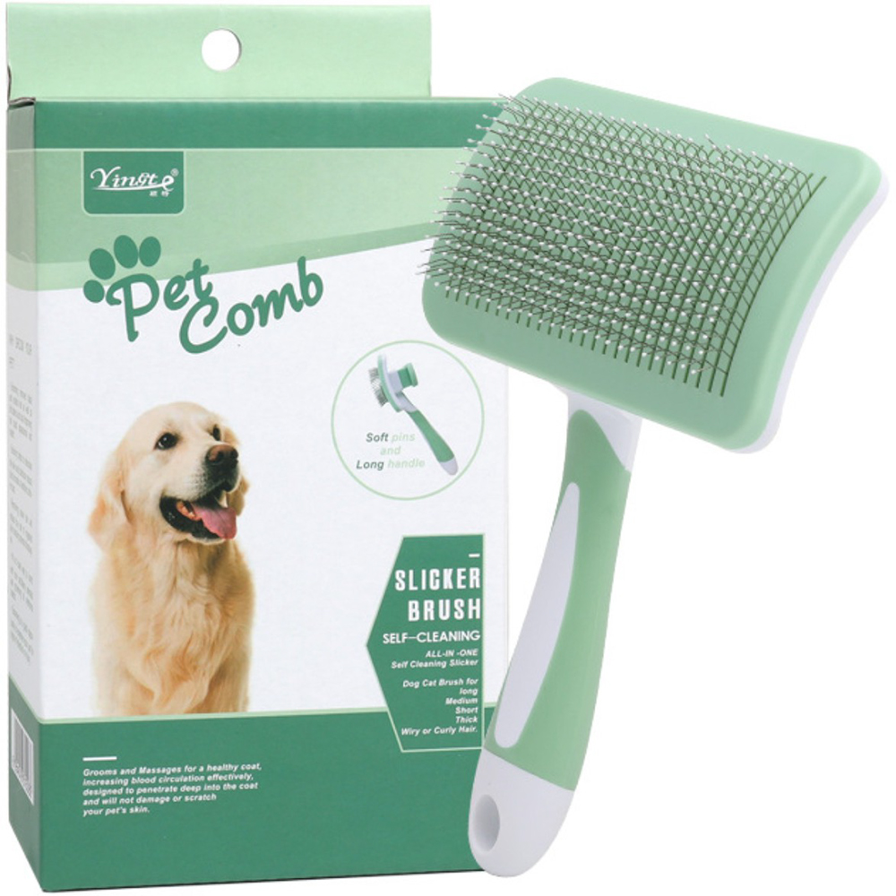 Αυτοκαθαριζόμενη Χτένα με Κουμπί Αφαίρεσης Τριχών Πράσινη 8cm