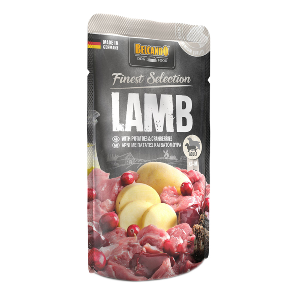 Συμπληρωματική τροφή με αρνί, πατάτες και βατόμουραΚατάλληλη για όλους τους ανήλικους κι ενήλικους σκύλους, ιδανική για σκύλους με ευαισθησίες