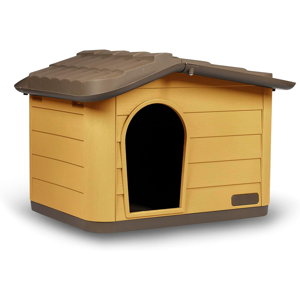 Σπιτάκι πλαστικό σε χρώμα μελί. Κατάλληλο για μικρού και μεσαίου μεγέθους σκυλάκια
