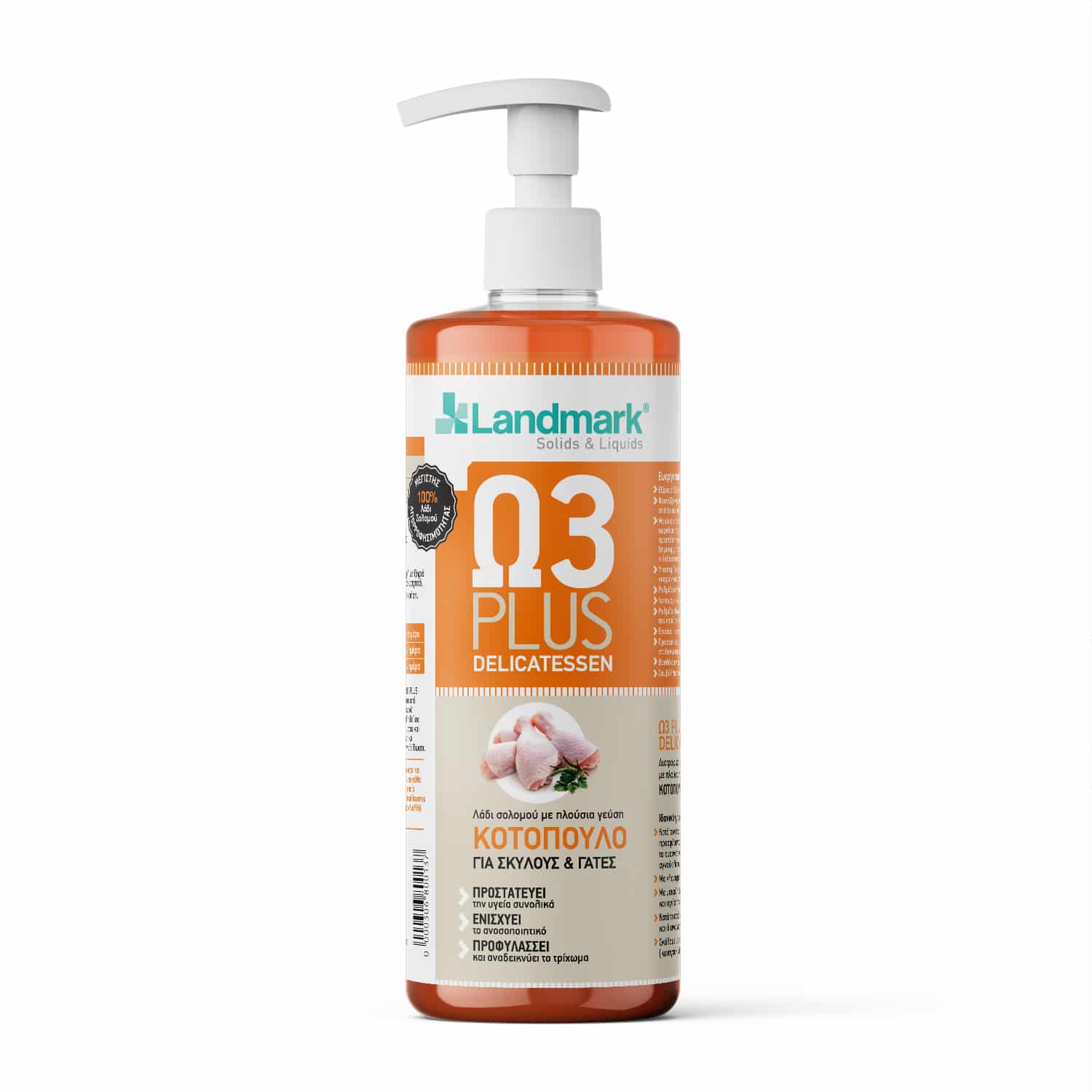 Το Λάδι σολομού για σκύλους Landmark Ω3 – Κοτόπουλο, είναι ένα ιδιαίτερα νόστιμο και υγιεινό συμπλήρωμα διατροφής, ιδανική λύση για σκύλους που δεν έχουν συνηθίσει στην καθημερινή τους διατροφή την γεύση του ιχθυελαίου!