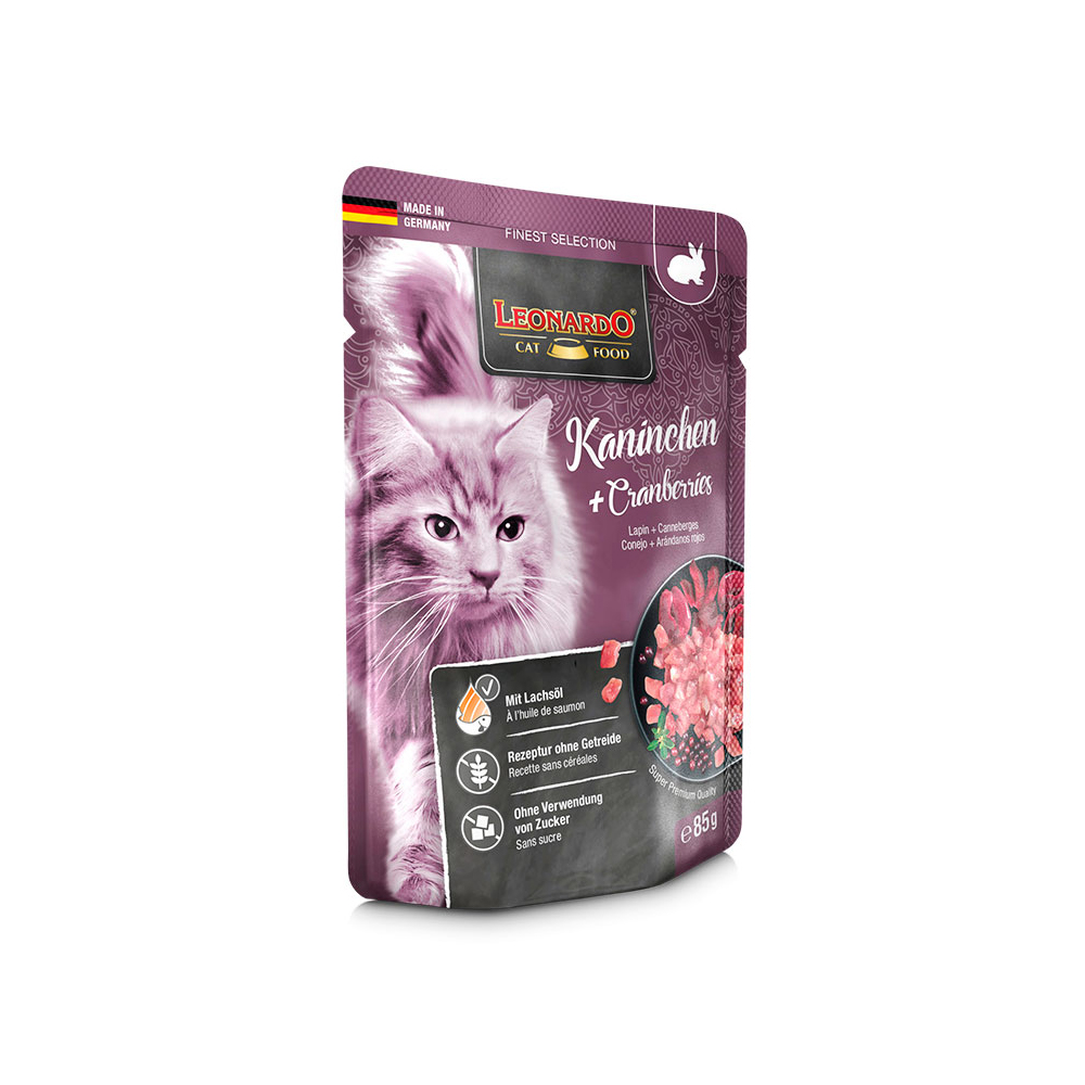 Υγρή τροφή με προσεκτικά μαγειρεμένο ζουμερό κρέας με κουνέλι και Cranberries Κατάλληλη για όλες τις ενήλικες γάτες