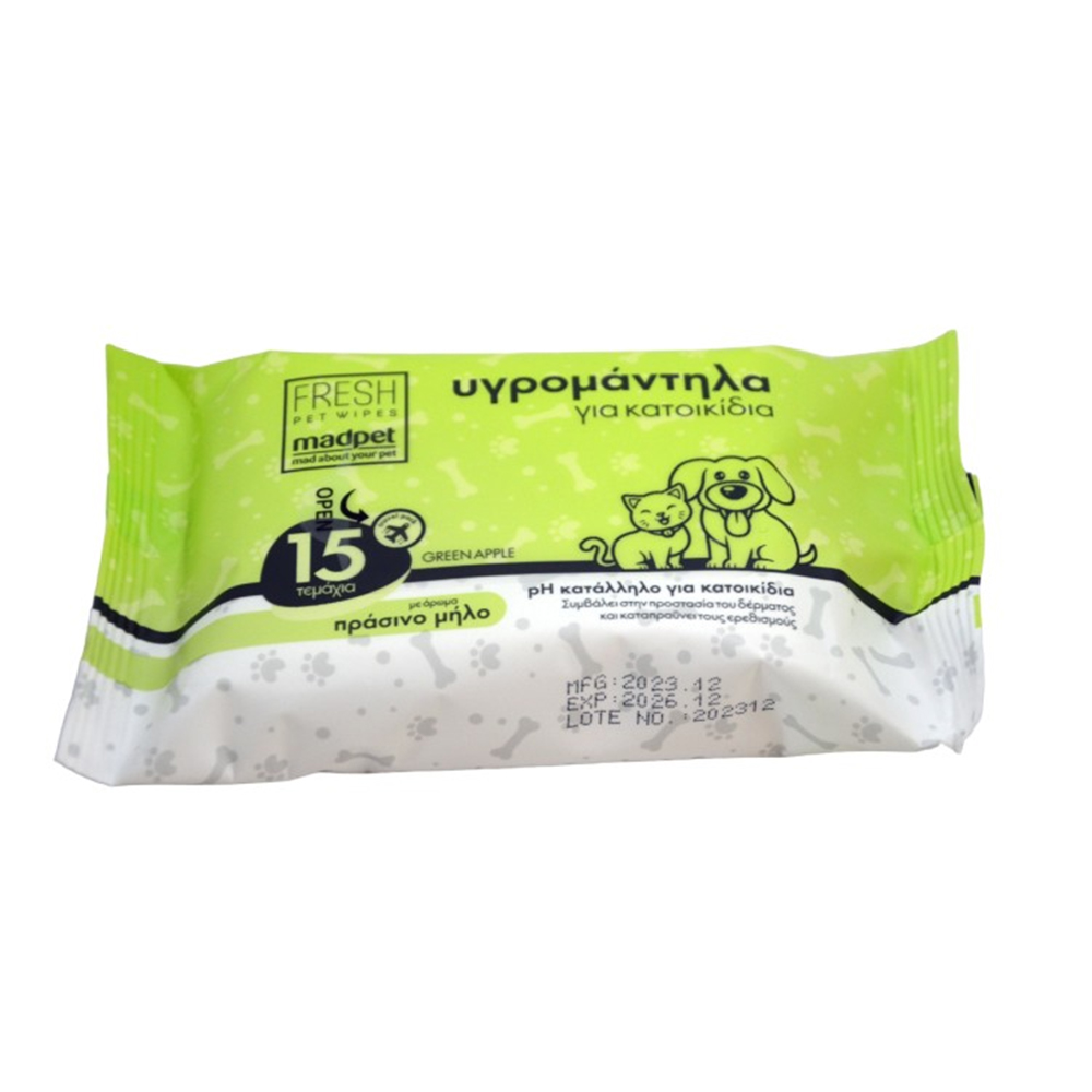 Υγρομάντηλα με pH κατάλληλο για καθημερινή χρήση σε κατοικίδια ζώα. Διαθέσιμα σε διάφορα αρώματα.