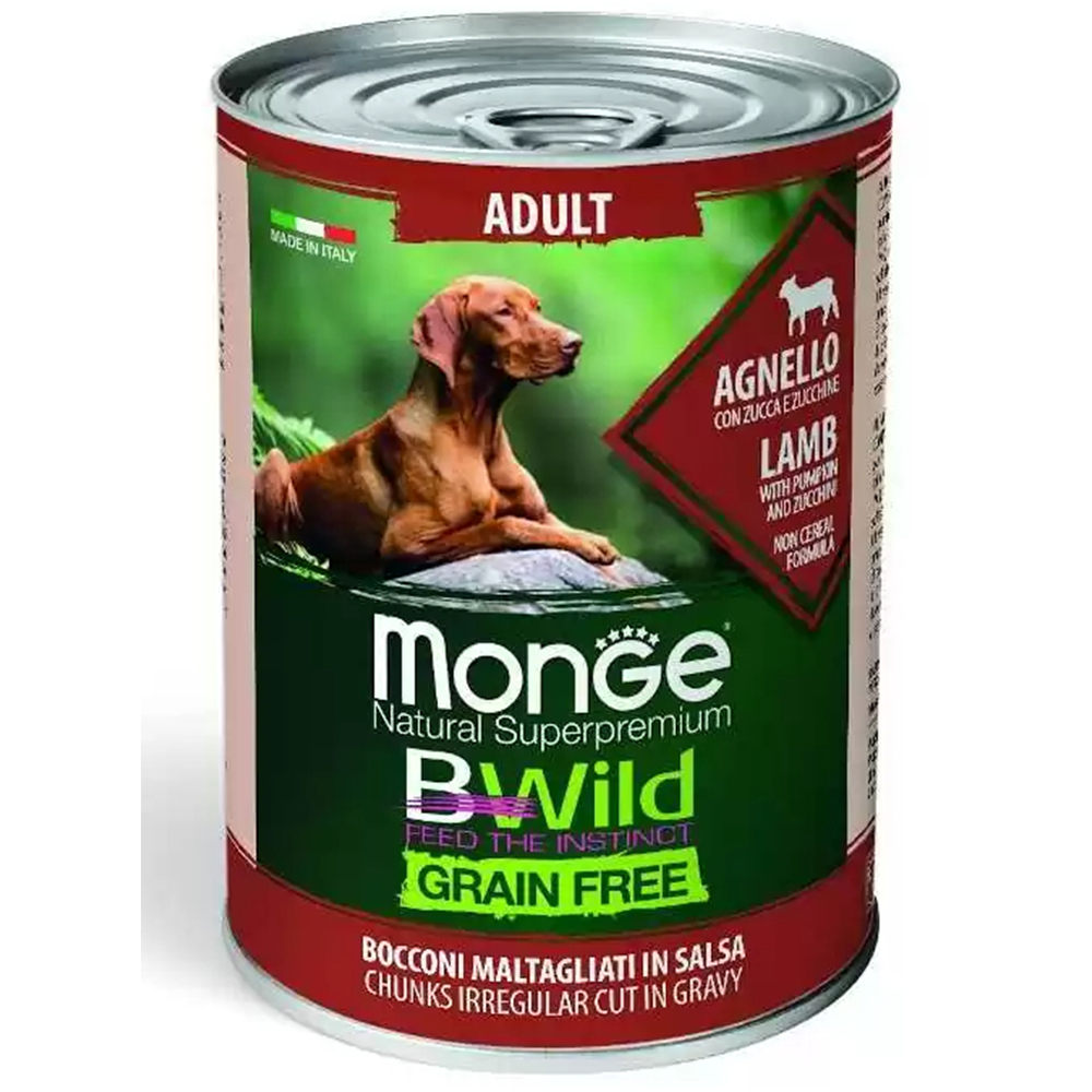 Monge Bwild Grain Free Κονσέρβα Σκύλου με Αρνί, Κολοκύθα και Κολοκυθιά 400gr