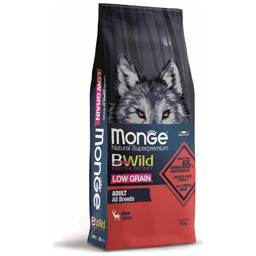 Monge BWild Low Grain All Breeds Ξηρά Τροφή με Λίγα Σιτηρά για Ενήλικους Σκύλους με Ελάφι 12kg