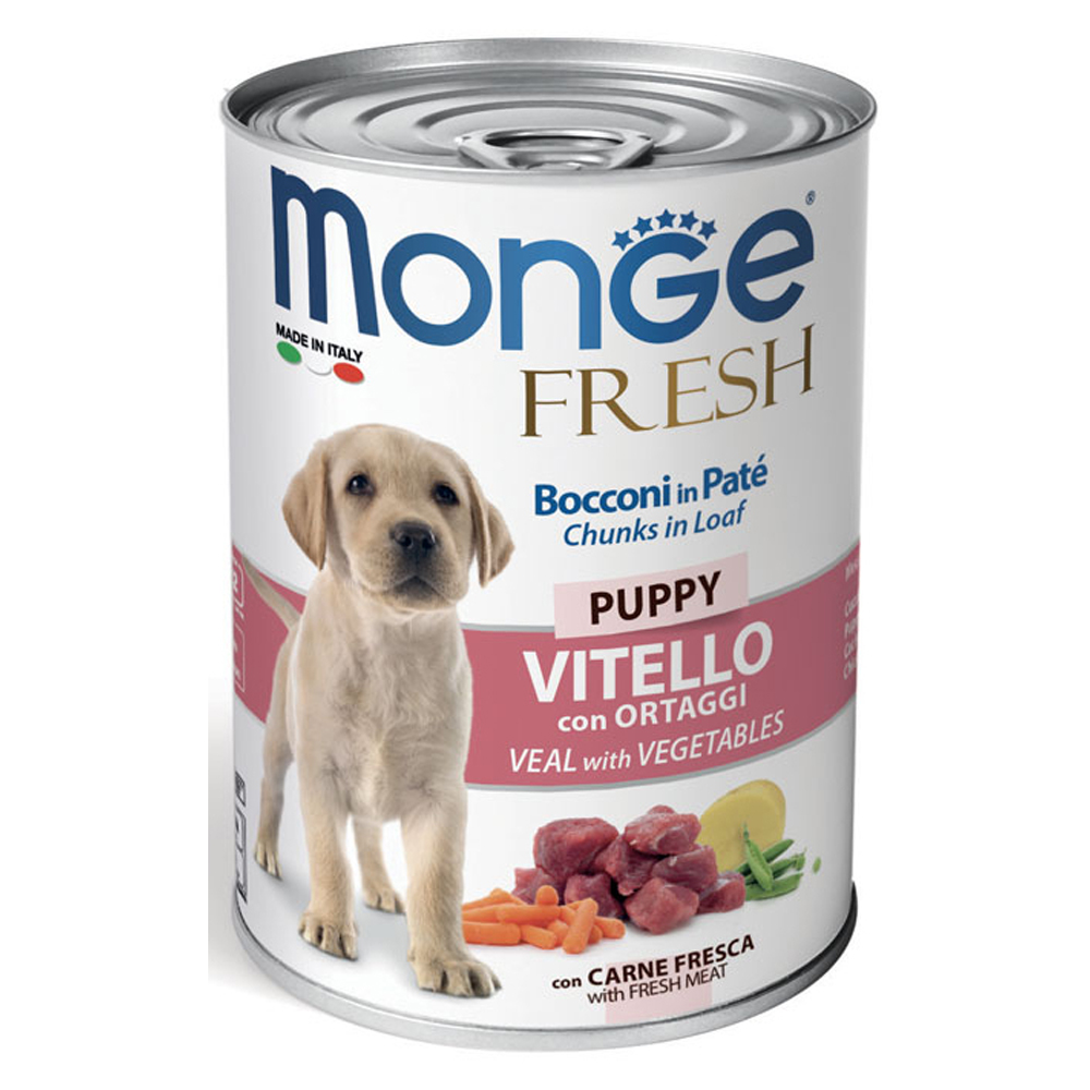 Πλήρης υγρή τροφή με μοσχάρι και λαχανικά, σε πατέ και κομματάκιαΚατάλληλη για ανήλικους σκύλους