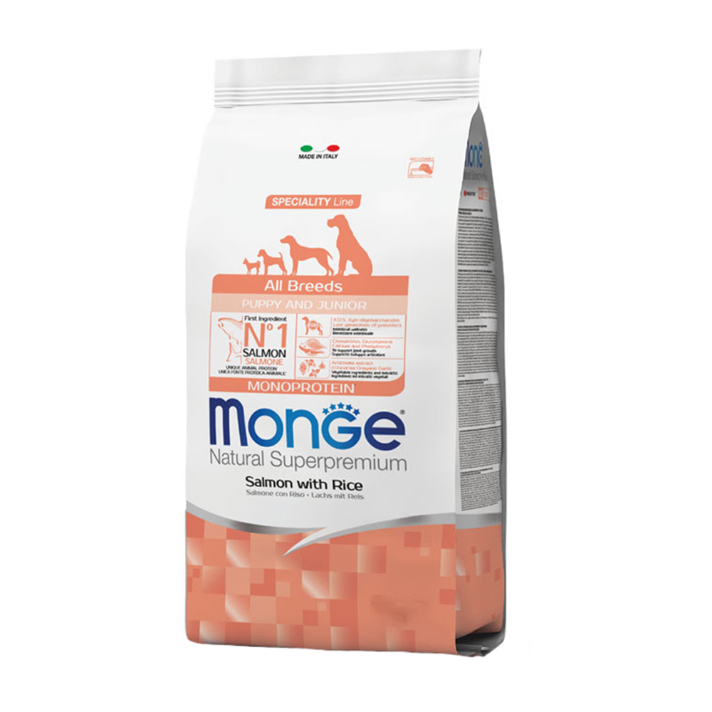 Πλήρης μονοπρωτεϊνική τροφή με σολομό και ρύζιΚατάλληλη για ανήλικους σκύλους όλων των φυλών