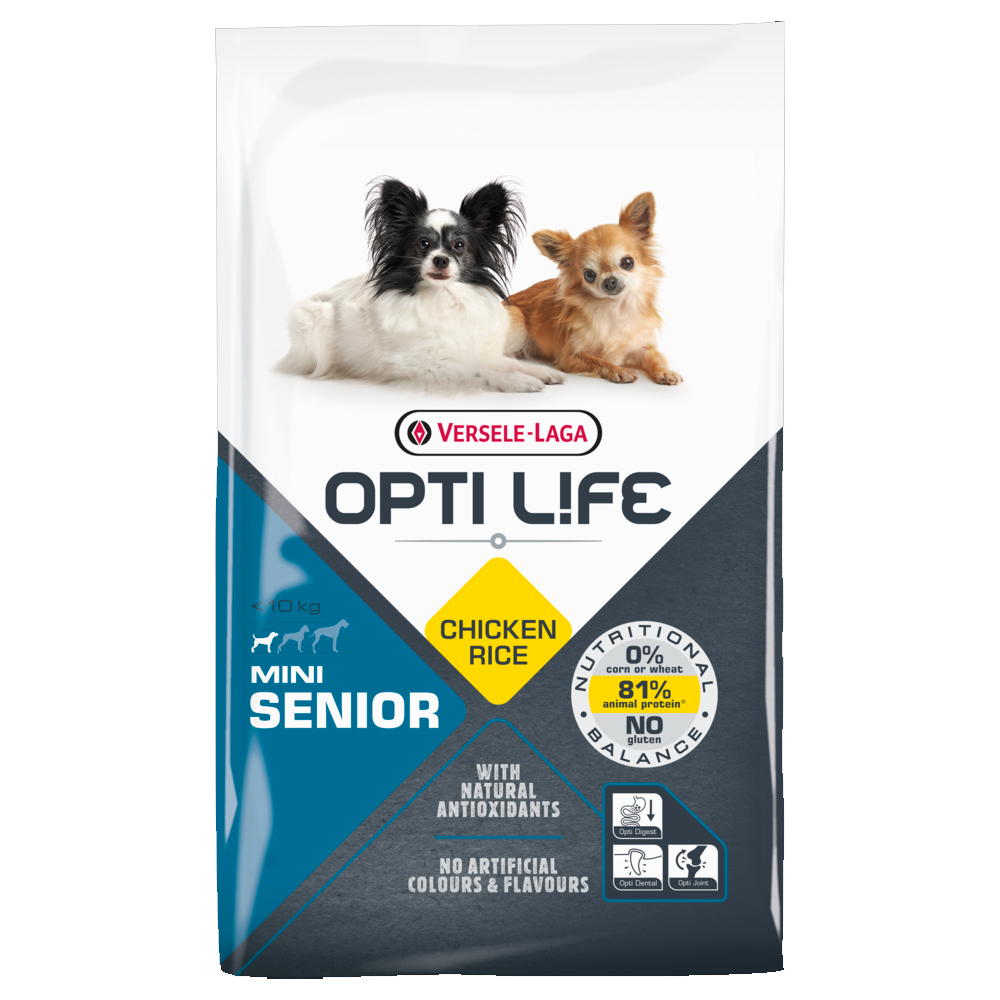 Πλήρης τροφή με κοτόπουλο και ρύζιΚατάλληλη για ώριμους κι ηλικιωμένους σκύλους, άνω των 7 ετών, μικρόσωμων φυλών