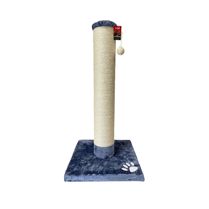Ονυχοδρόμιο για γάτες με κρεμαστό παιχνίδι μπάλα – σωλήνας από ανθ. σχοινί Sisal.Σχέδιο: Patty, Χρώμα: ΜπλεΔιαστάσεις: 45*45*90cm, διάμετρος σωλήνα: 14cm