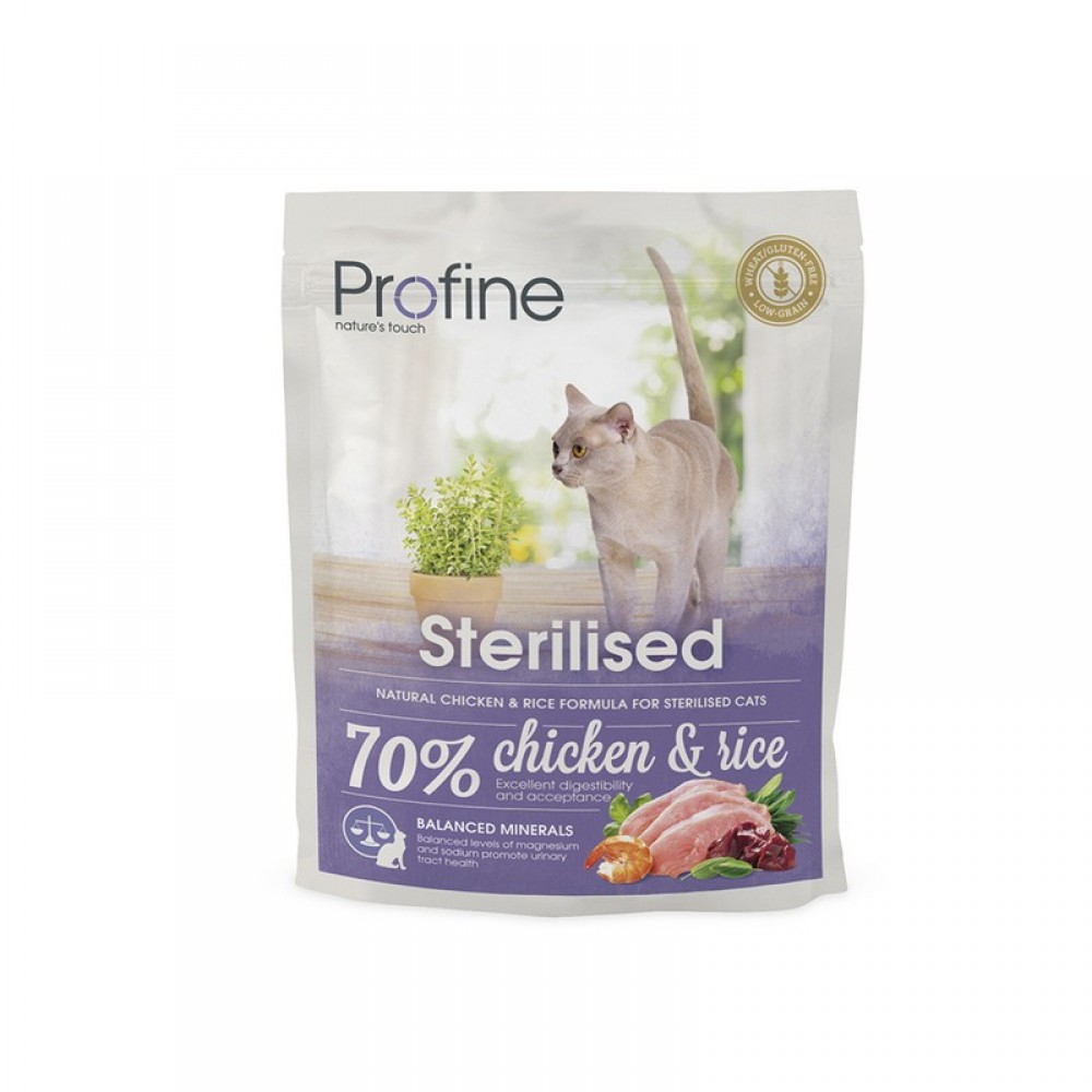 Πλήρης τροφή με κοτόπουλο και ρύζιΚατάλληλη για όλες τις στειρωμένες γάτες