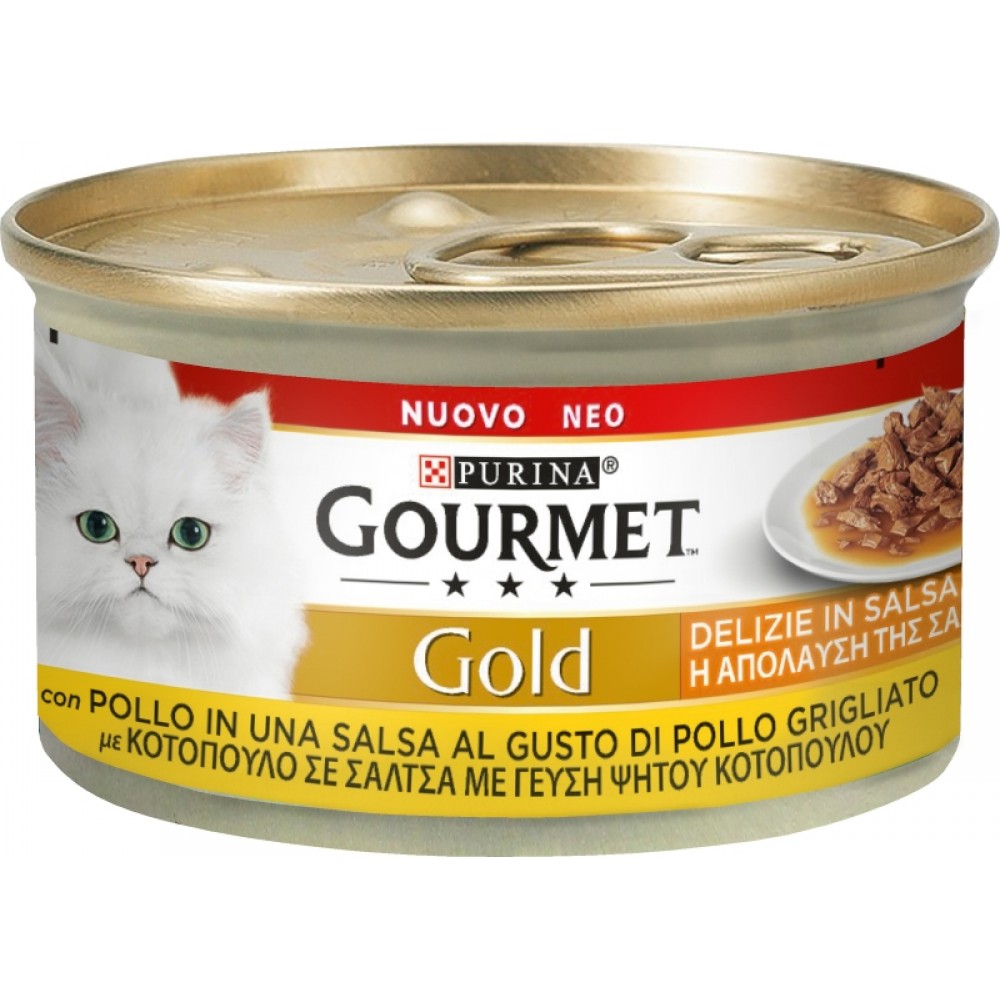 Πλήρης υγρή τροφή με λεπτοκομμένα φιλετάκια κοτόπουλου σε σάλτσαΚατάλληλη για ενήλικες γάτες