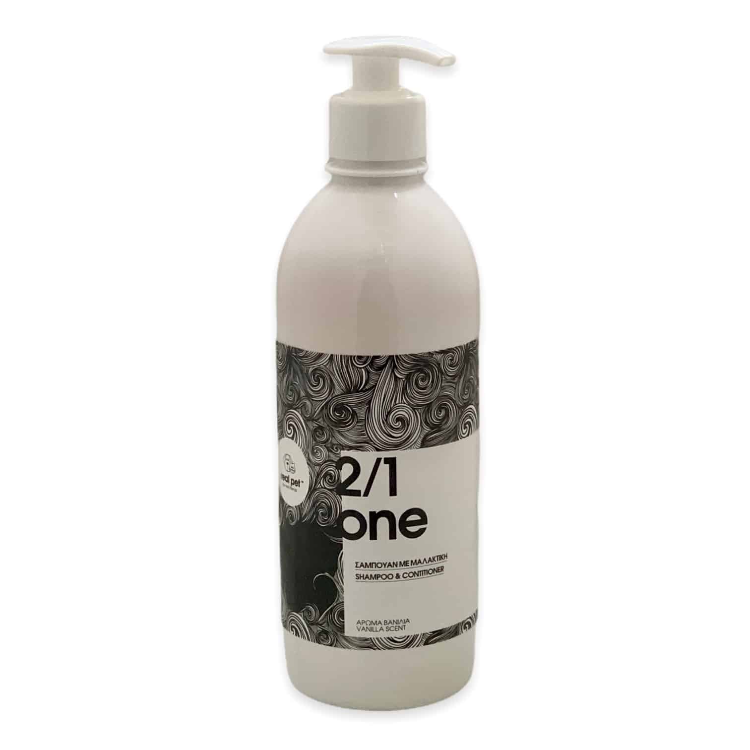 Ελληνικό υποαλλεργικό σαμπουάν με conditioner κατάλληλο για ευαίσθητες επιδερμίδες. Με άρωμα βανίλια, χωρίς προσθήκη χρωστικών και parabens. Για λαμπερό και εύκολο στο χτένισμα τρίχωμα – ενάντια στη δημιουργία κόμπων. Ιδανικό για μακρύτριχες φυλές σκύλων.