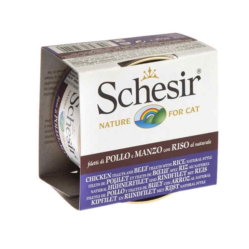 Συμπληρωματική υγρή τροφή με φιλετάκια κοτόπουλου και μοσχαριού με ρύζι σε νερόΚατάλληλη για ενήλικες γατούλες