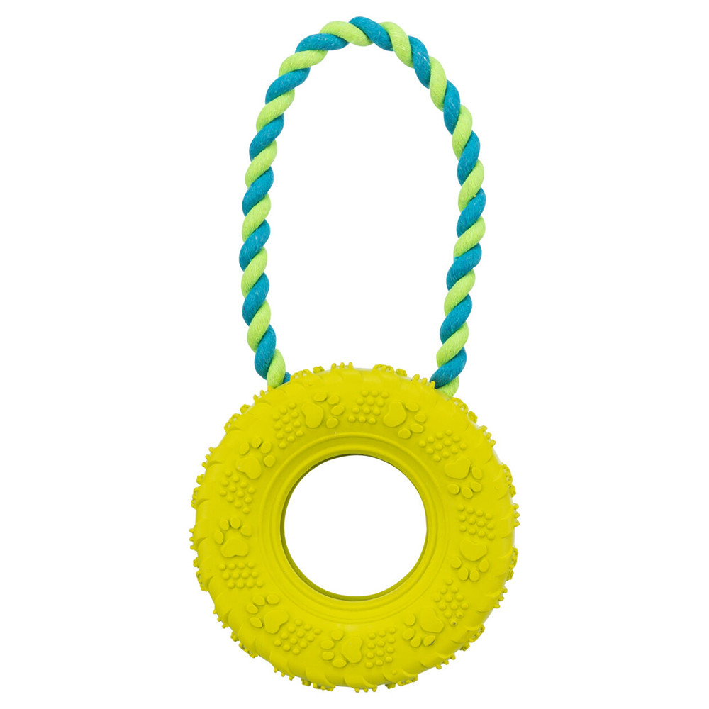 Παιχνίδι ελαστικό κατάλληλο για δυνατούς σκύλους. Κατασκευασμένο από φυσικό καουτσούκ. Εξαιρετικά στιβαρό λόγω του υφασμάτινου ένθετου.