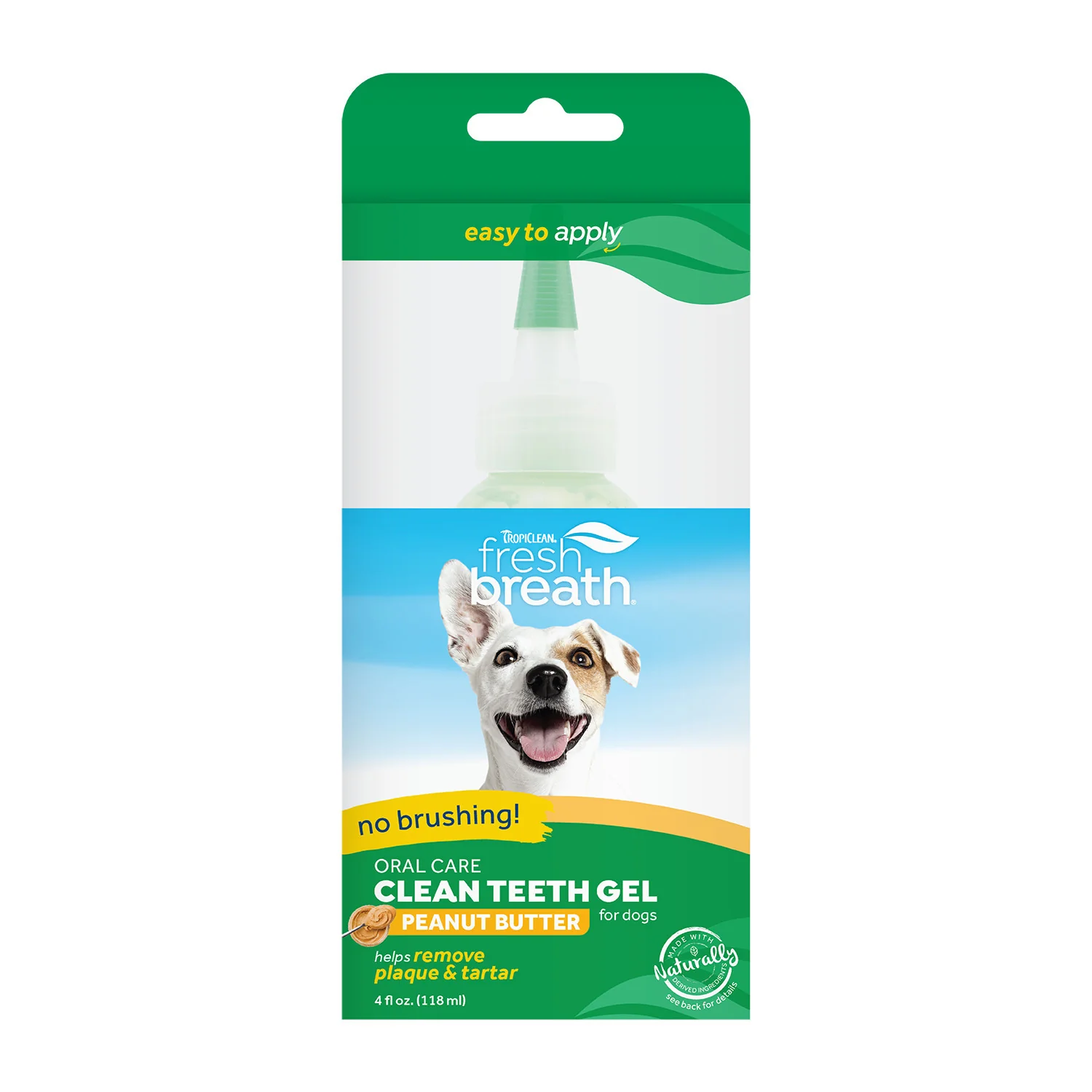 Το TropiClean Fresh Breath Oral Care Clean Teeth Peanut Butter Gel for Dogs υποστηρίζει τη στοματική υγεία του σκύλου σας και του χαρίζει δροσερή αναπνοή χωρίς να χρειάζεται βούρτσισμα! Αυτό το νόστιμο τζελ με γεύση φυστικοβούτυρο βοηθά στην ασφαλή και αποτελεσματική αφαίρεση της πλάκας και της πέτρας, ενώ παράλληλα φρεσκάρει την αναπνοή τους. Για μέγιστη προστασία από την κακοσμία του στόματος και τα δόντια, χρησιμοποιήστε το σε συνδυασμό με το διάλυμα οδοντιατρικής υγείας TropiClean Fresh Breath και τα οδοντιατρικά στικ TropiClean Fresh Breath.
