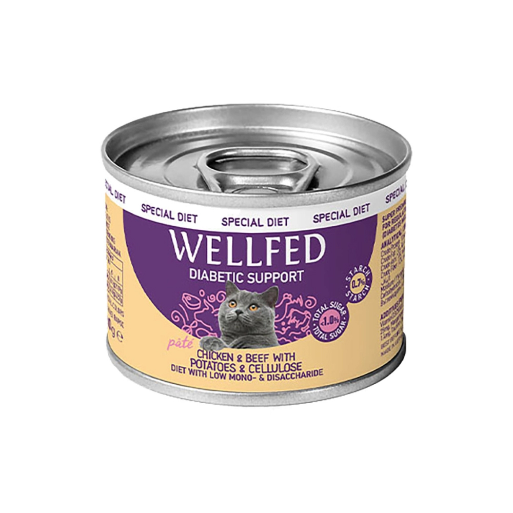 Πλήρης υγρή τροφή με κοτόπουλο και βοδινό, σε πατέ, για τη ρύθμιση του επιπέδου γλυκόζης στο αίμαΚατάλληλη για ενήλικες γάτες