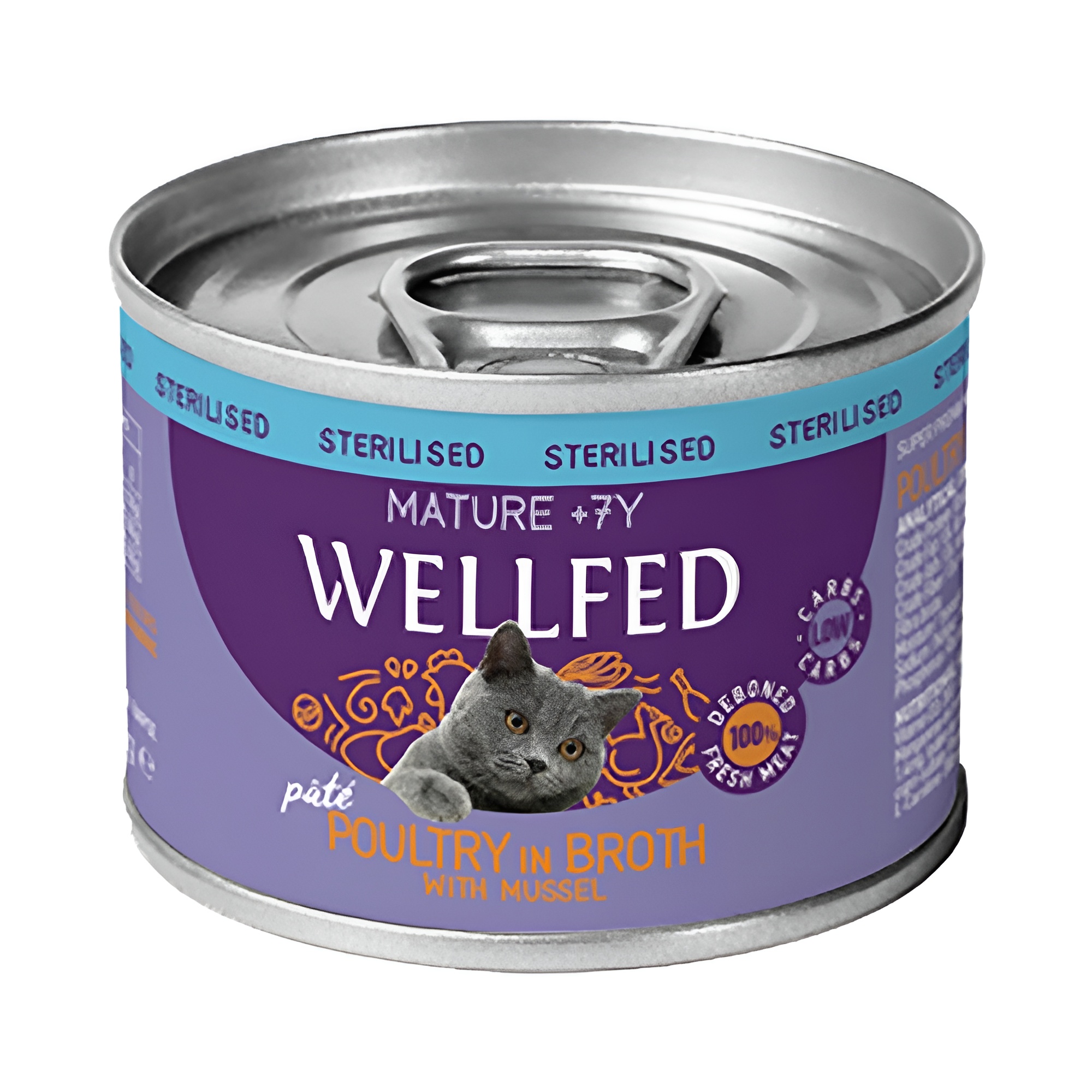 Πλήρης υγρή τροφή με πουλερικά και εκχύλισμα πρασινόχειλου μυδιού, σε πατέΚατάλληλη για στειρωμένες γάτες άνω των 7 ετών