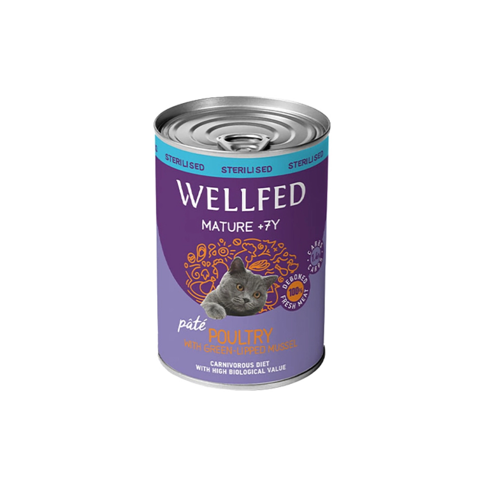 Πλήρης υγρή τροφή με πουλερικά και εκχύλισμα πρασινόχειλου μυδιού, σε πατέΚατάλληλη για στειρωμένες γάτες άνω των 7 ετών