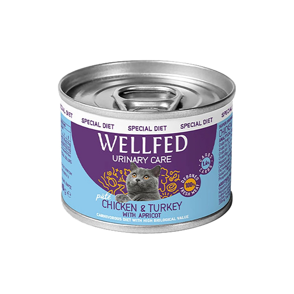 Πλήρης υγρή τροφή με κοτόπουλο και γαλοπούλα σε πατέΚατάλληλη για ενήλικες γάτες με προβλήματα του ουροποιητικού